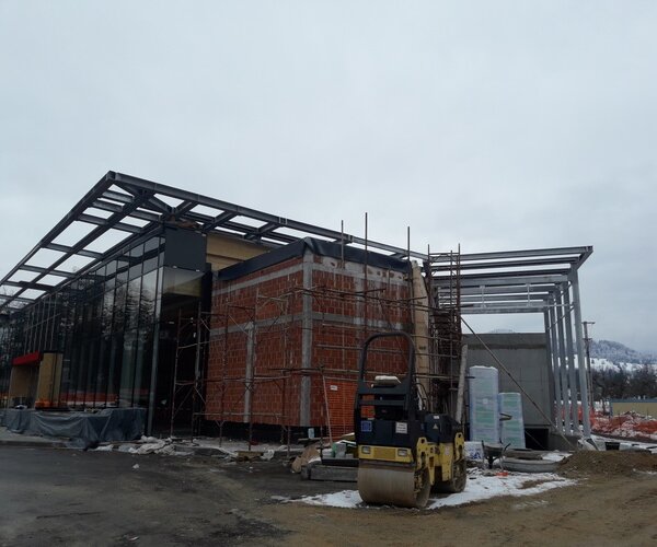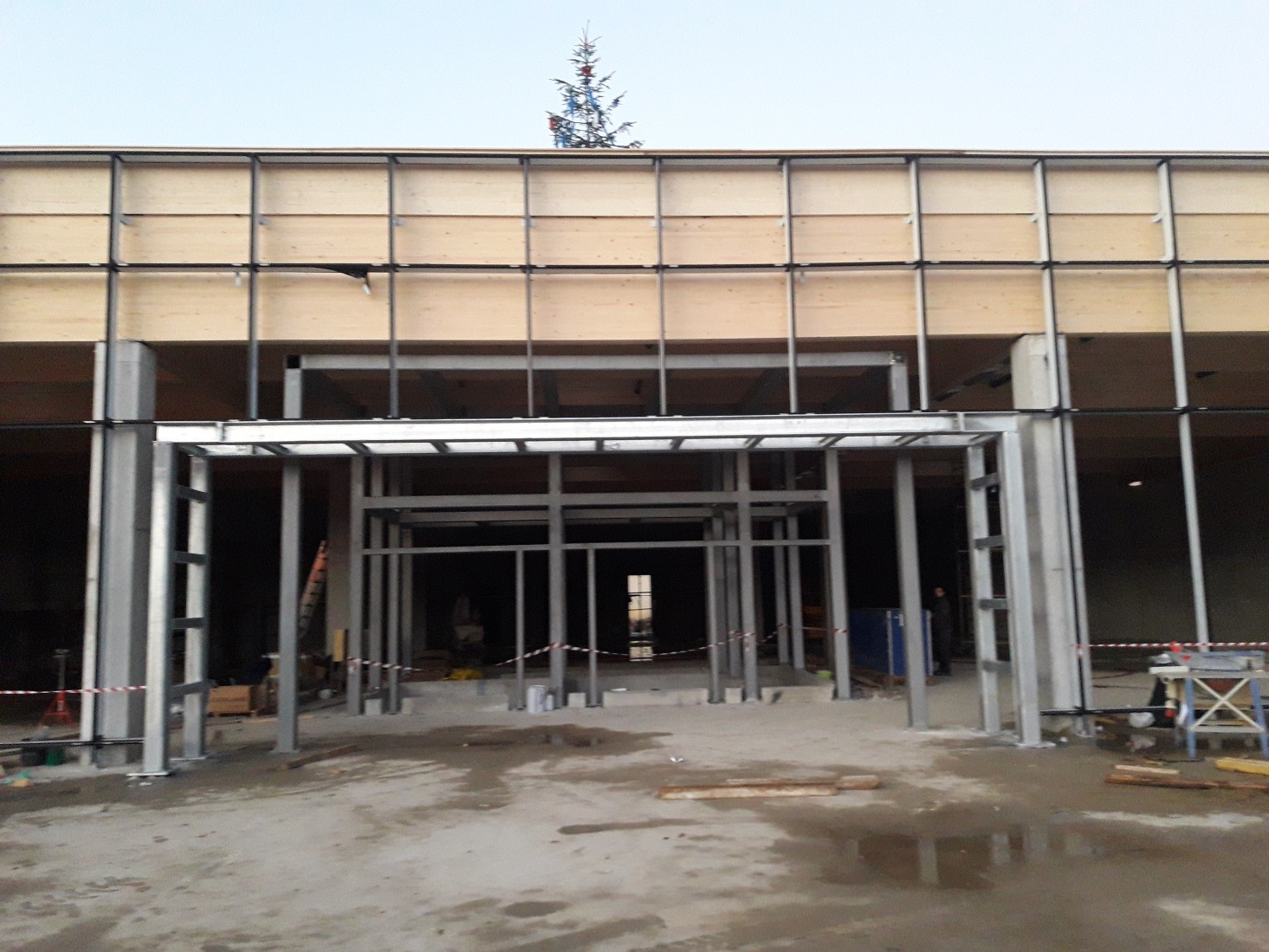 Izvedba jeklene konstrukcije nadstrešnic in dvigalnih jaškov SPAR Bled cca. 120 ton.