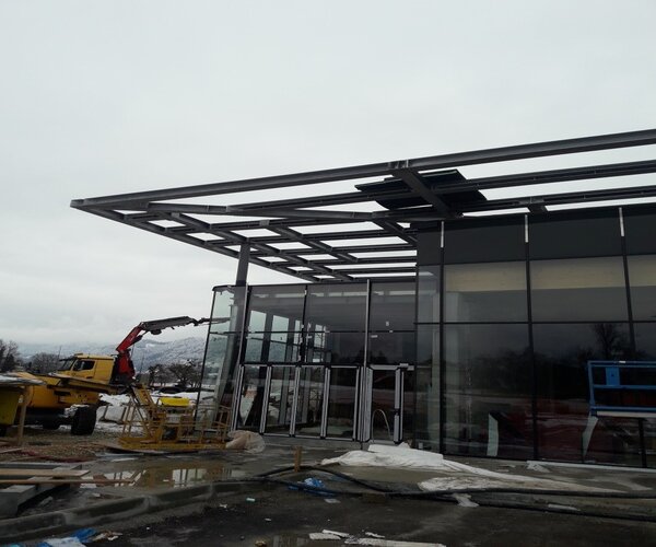 Izvedba jeklene konstrukcije nadstrešnic in dvigalnih jaškov SPAR Bled cca. 120 ton.