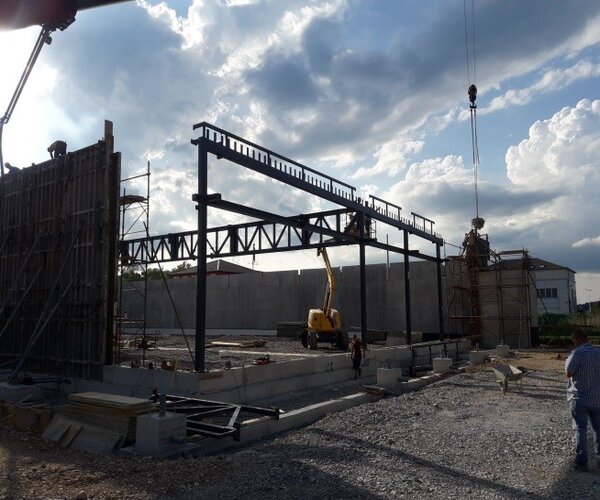 Izdelav in montaža jeklene konstrukcije trgovine LIDL v Ilirski Bistrici cca. 40 ton.Montaža nosilne konstrukcije trgovinskega dela.